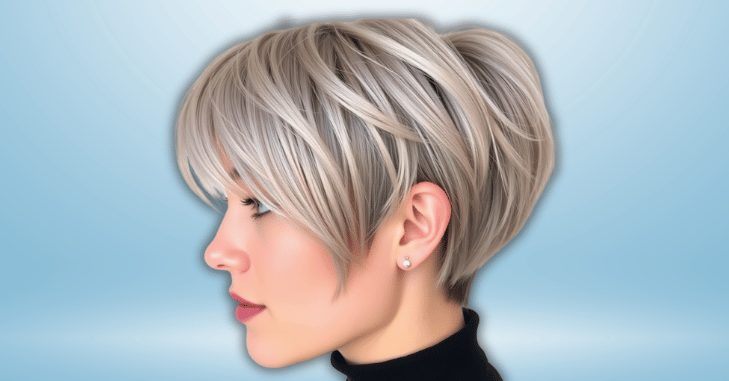Merging the boldness of a pixie cut with the softness of longer curtain bangs creates a modern, fashion-forward hairstyle. The bangs, typically parted in the middle or slightly off-center, add softness to the strong lines of the pixie, framing the forehead and temples while maintaining structure.