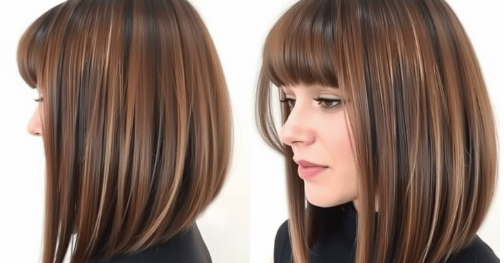 The bluntness of the lob gives it a modern edge, while the curtain bangs introduce a gentle, face-framing element. It works exceptionally well with straight or slightly wavy hair and is an excellent option for those wanting to balance structure with softness in their haircut.